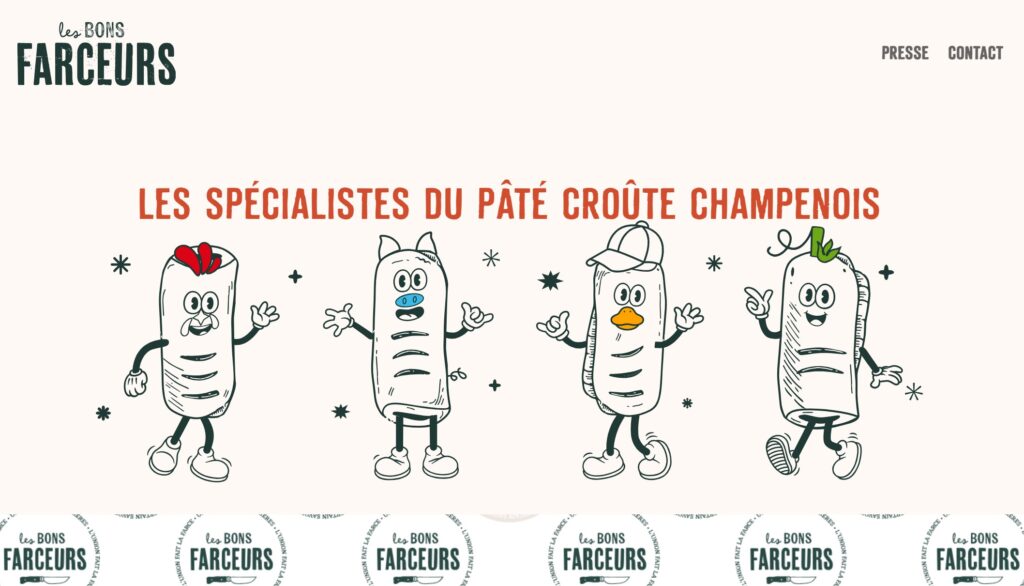Pour ce projet de site vitrine, j’ai eu le plaisir de participer à la création de l’univers visuel de la marque Les Bons Farceurs, qui propose des pâtés aux recettes originales. En plus du webdesign, j’ai réalisé toutes les illustrations des produits : chaque pâté a son propre petit personnage dessiné en fonction de ses ingrédients, pour refléter la personnalité de chaque recette. Un projet gourmand, fun et créatif, où j’ai pu mêler illustration et design numérique pour donner vie à une marque pétillante !